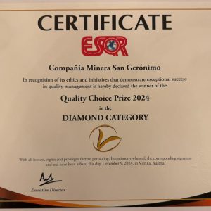El ESQR Quality Choice Prize se suma a la lista de reconocimientos obtenidos por empresas líderes como Philips, BMW, Delta Air Lines y otras, reafirmando el compromiso de Minera San Gerónimo con la excelencia, consolidando su liderazgo en la industria minera.