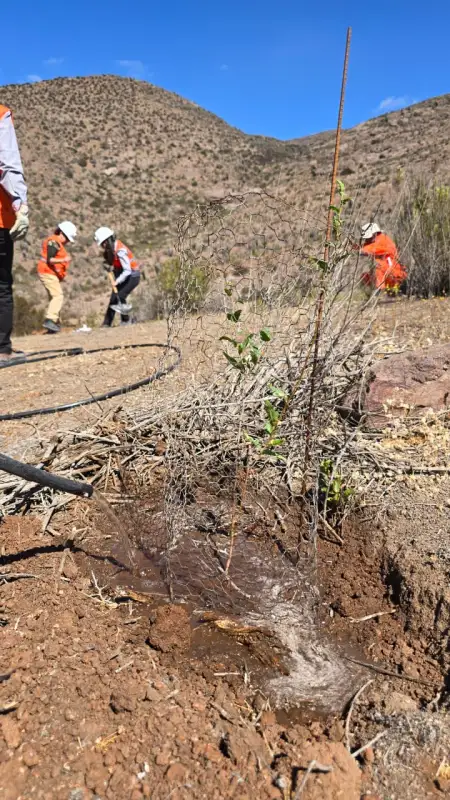 La iniciativa se desarrolla en el sector de Humo Corral, donde la compañía está ejecutando acciones de restauración ambiental orientadas a la recuperación de suelos, flora nativa y equilibrio del ecosistema.